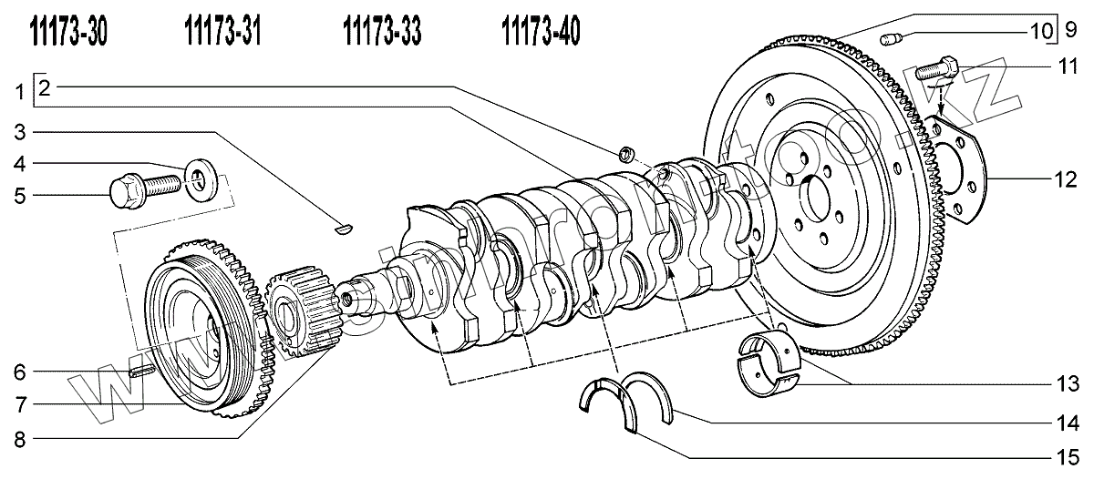 Каталог запасных частей к технике: ВАЗ LADA Kalina 1117. Вал коленчатый и маховик