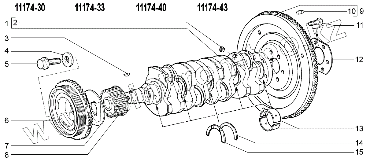 Каталог запасных частей к технике: ВАЗ LADA Kalina 1117. Вал коленчатый и маховик