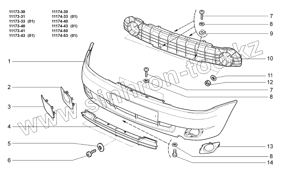 Каталог запасных частей к технике: ВАЗ LADA KALINA 1117. Бампер передний;Front bumper