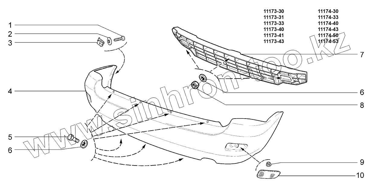 Каталог запасных частей к технике: ВАЗ LADA KALINA 1117. Бампер задний;Rear bumper