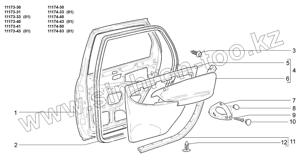 Каталог запасных частей к технике: ВАЗ LADA KALINA 1117. Двери задние;Rear doors