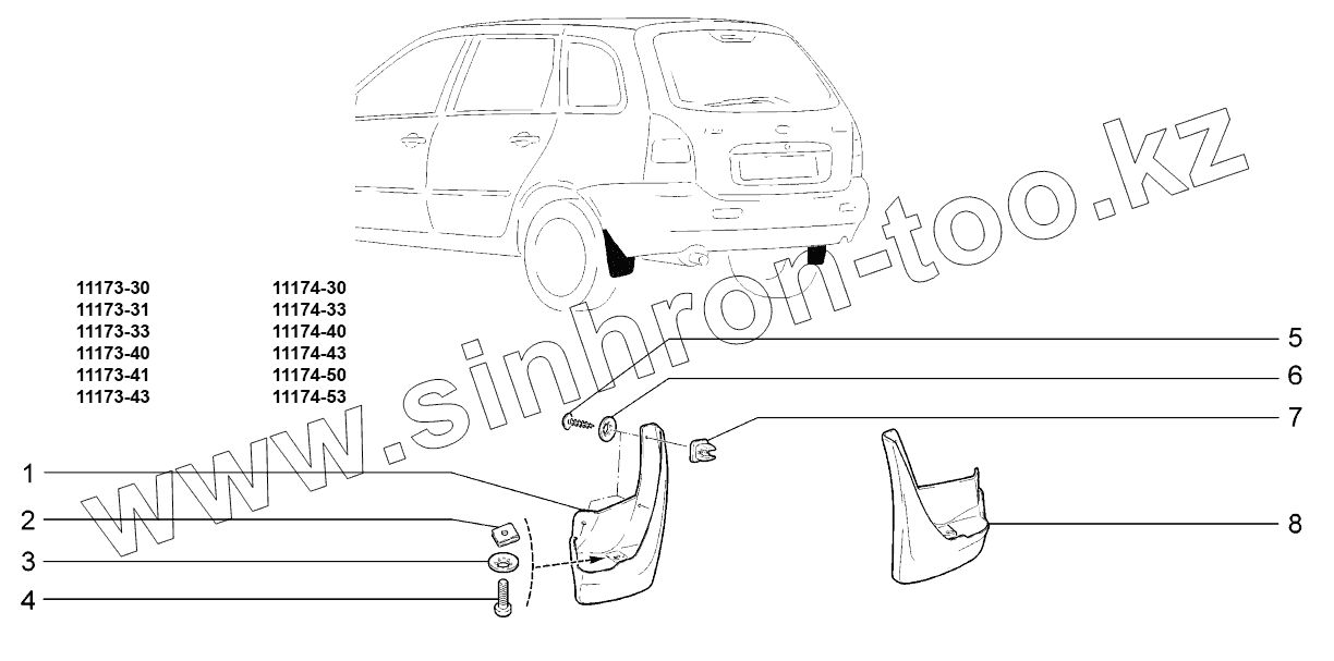 Каталог запасных частей к технике: ВАЗ LADA KALINA 1117. Фартуки;Mudguards