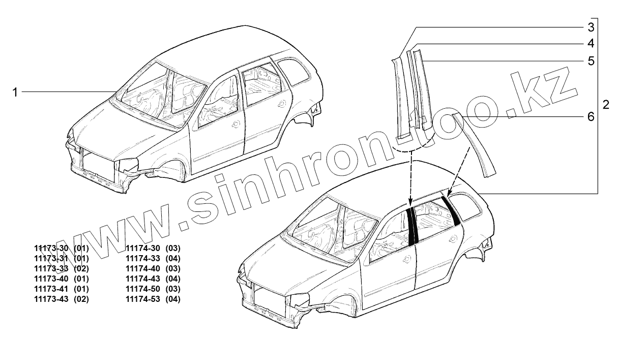 Каталог запасных частей к технике: ВАЗ LADA KALINA 1117. Кузов;Body