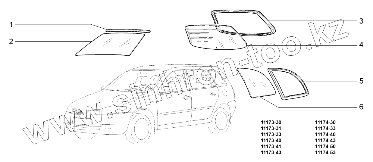 Каталог запасных частей к технике: ВАЗ LADA KALINA 1117. Окна;Windows
