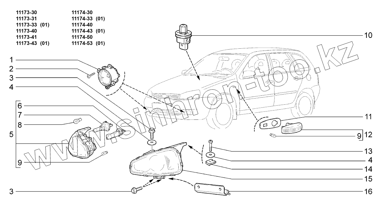 Каталог запасных частей к технике: ВАЗ LADA KALINA 1117. Освещение переднее;Front lights