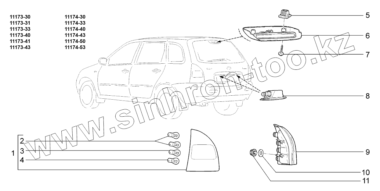 Каталог запасных частей к технике: ВАЗ LADA KALINA 1117. Освещение заднее;Rear lights