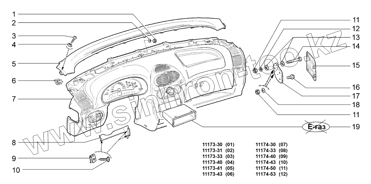Каталог запасных частей к технике: ВАЗ LADA KALINA 1117. Панель приборов;Instrument panel