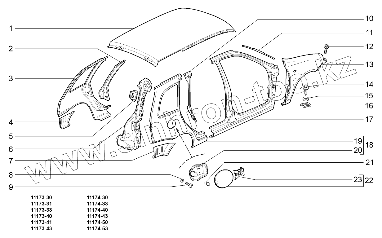 Каталог запасных частей к технике: ВАЗ LADA KALINA 1117. Панели кузова;Body panels