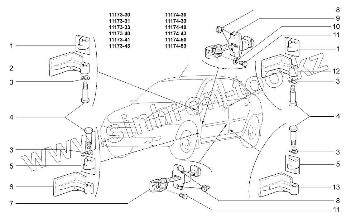 Каталог запасных частей к технике: ВАЗ LADA KALINA 1117. Петли дверей;Door hinges