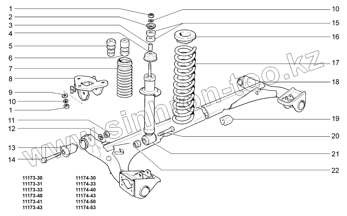 Каталог запасных частей к технике: ВАЗ LADA KALINA 1117. Подвеска задняя;Rear suspension