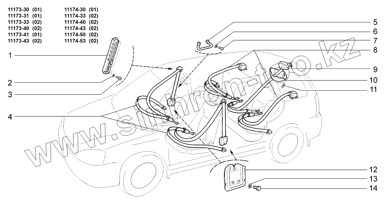 Каталог запасных частей к технике: ВАЗ LADA KALINA 1117. Ремни безопасности;Seat belt