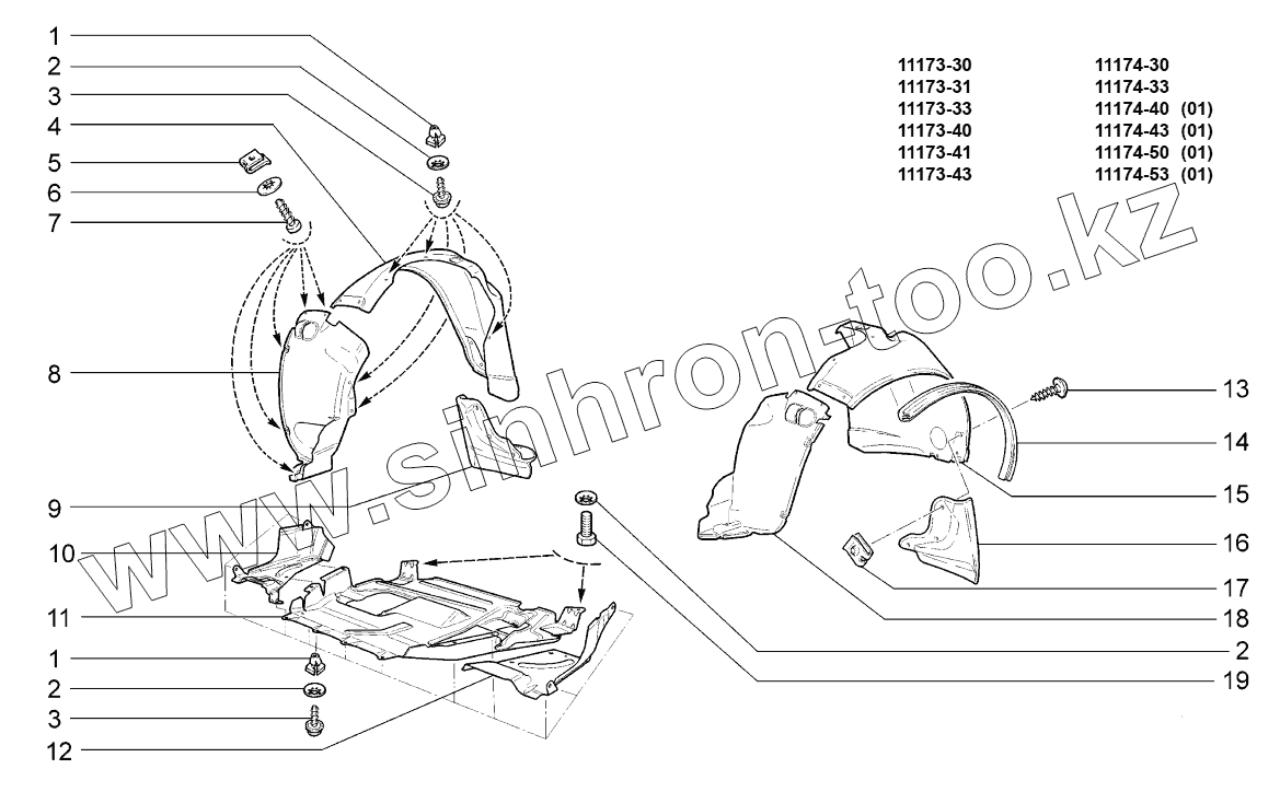Каталог запасных частей к технике: ВАЗ LADA KALINA 1117. Щитки;Covers
