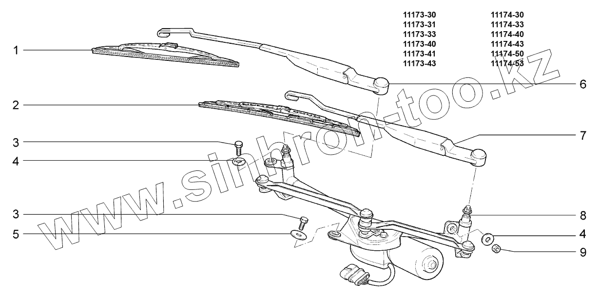 Каталог запасных частей к технике: ВАЗ LADA KALINA 1117. Стеклоочиститель передний;Front wiper