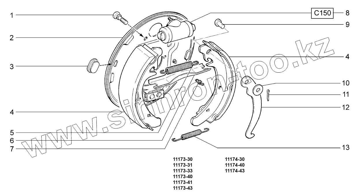 Каталог запасных частей к технике: ВАЗ LADA KALINA 1117. Тормоза задние;Rear brakes