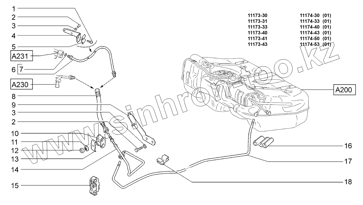 Каталог запасных частей к технике: ВАЗ LADA KALINA 1117. Трубопроводы топливные;Fuel lines