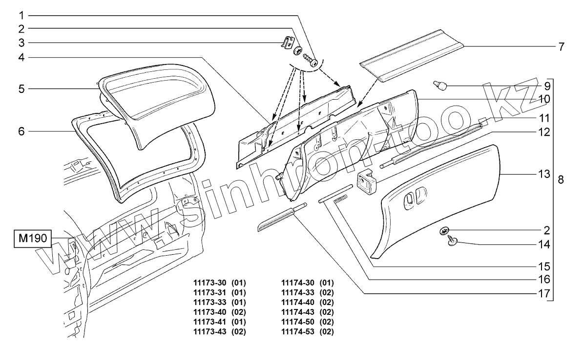 Каталог запасных частей к технике: ВАЗ LADA KALINA 1117. Ящик вещевой;Glove box
