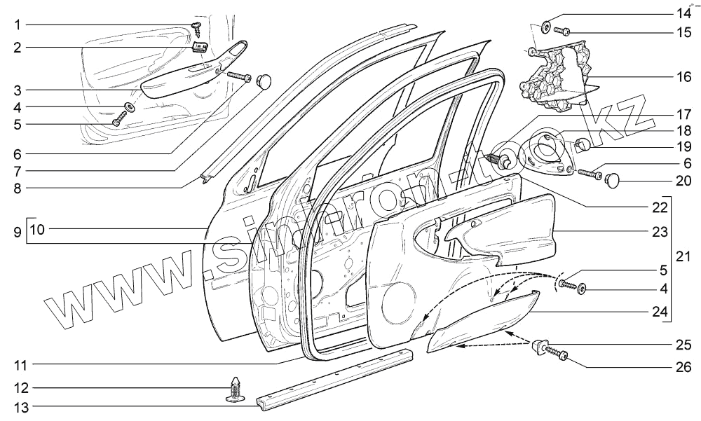 Каталог запасных частей к технике: ВАЗ LADA Kalina 1117, 1118, 1119. Двери передние