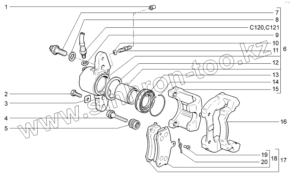Каталог запасных частей к технике: ВАЗ LADA Kalina 1117, 1118, 1119. Элементы передних тормозов
