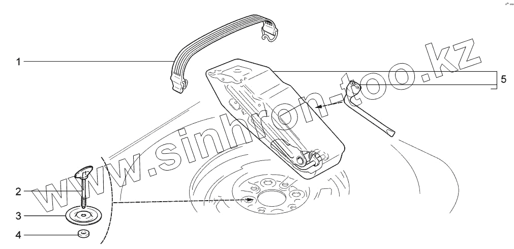 Домкрат и ключ с чехлом в сборе