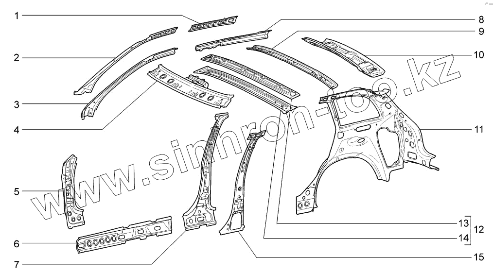 Каталог запасных частей к технике: ВАЗ LADA Kalina 1117, 1118, 1119. Каркас боковины и задка