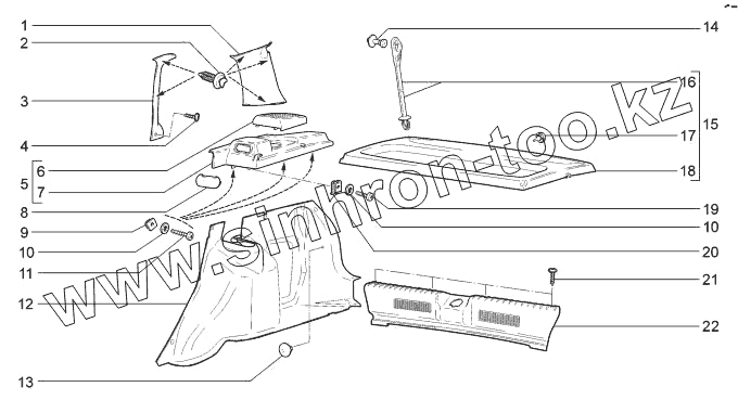 Каталог запасных частей к технике: ВАЗ LADA Kalina 1117, 1118, 1119. Обивка задней части салона
