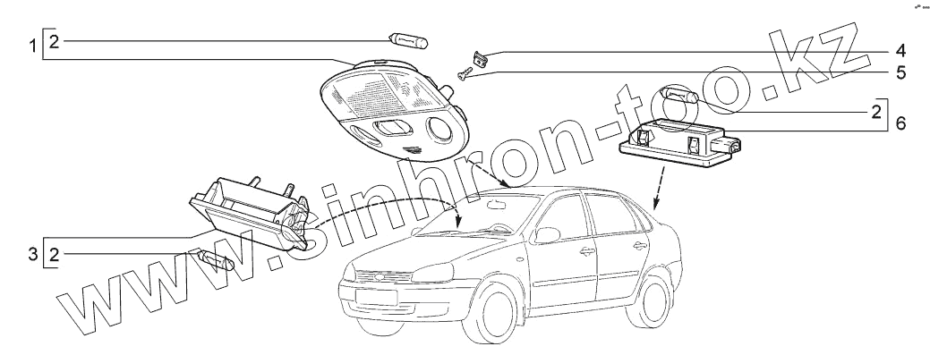 Каталог запасных частей к технике: ВАЗ LADA Kalina 1117, 1118, 1119. Освещение салона
