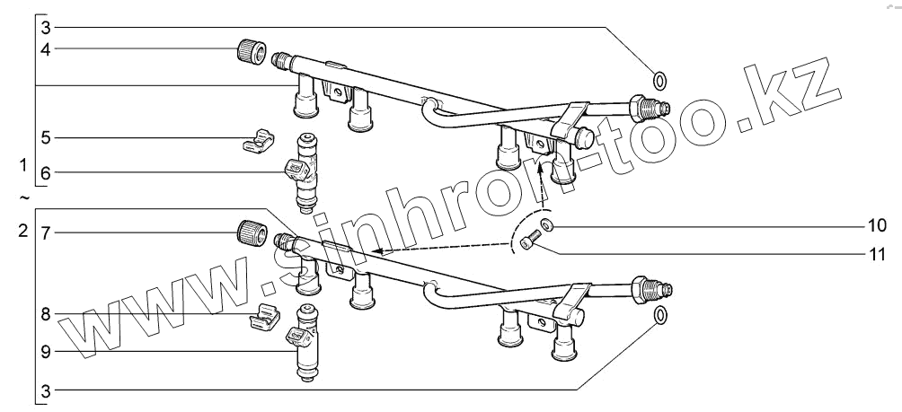 Каталог запасных частей к технике: ВАЗ LADA Kalina 1117, 1118, 1119. Рампа и форсунки