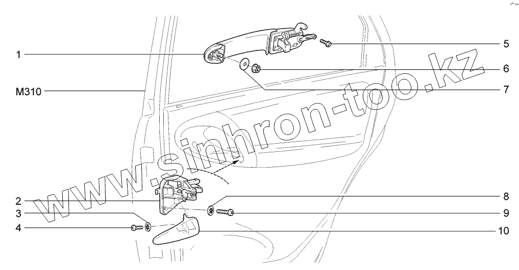 Каталог запасных частей к технике: ВАЗ LADA Kalina 1117, 1118, 1119. Ручки задних дверей