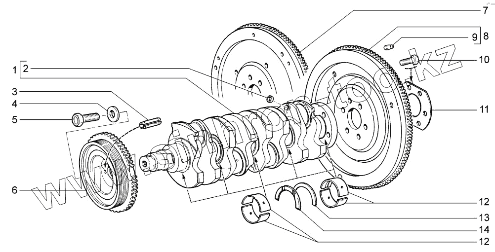Каталог запасных частей к технике: ВАЗ LADA Kalina 1117, 1118, 1119. Вал коленчатый и маховик