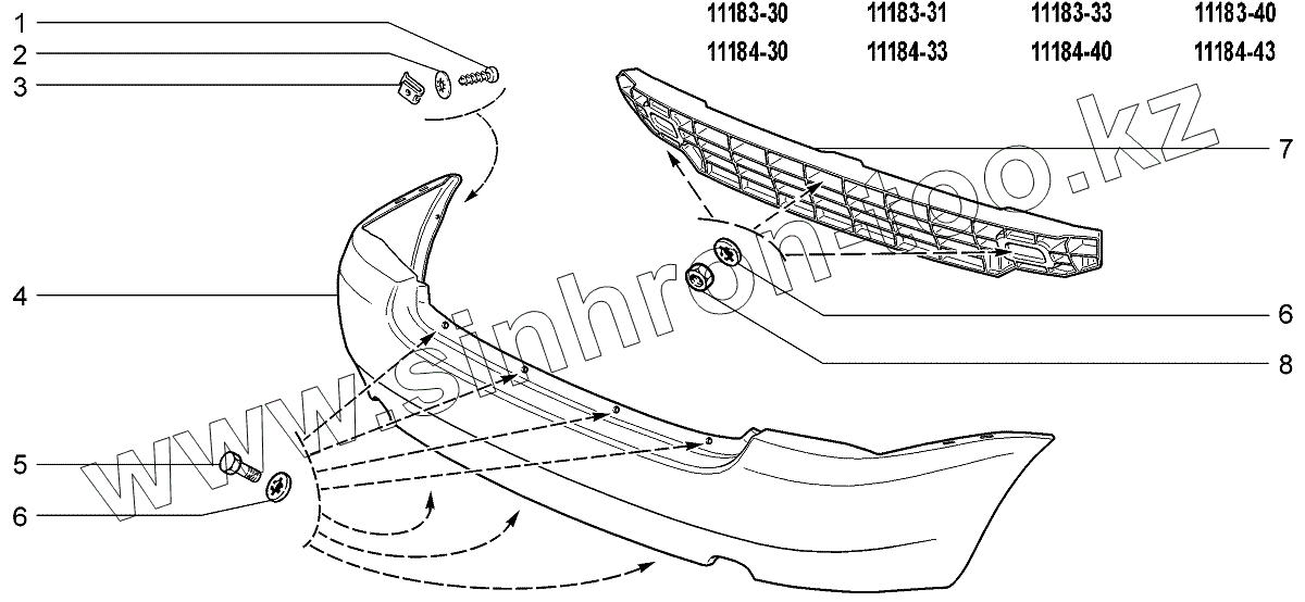 Каталог запасных частей к технике: ВАЗ LADA Kalina 1118. Бампер задний