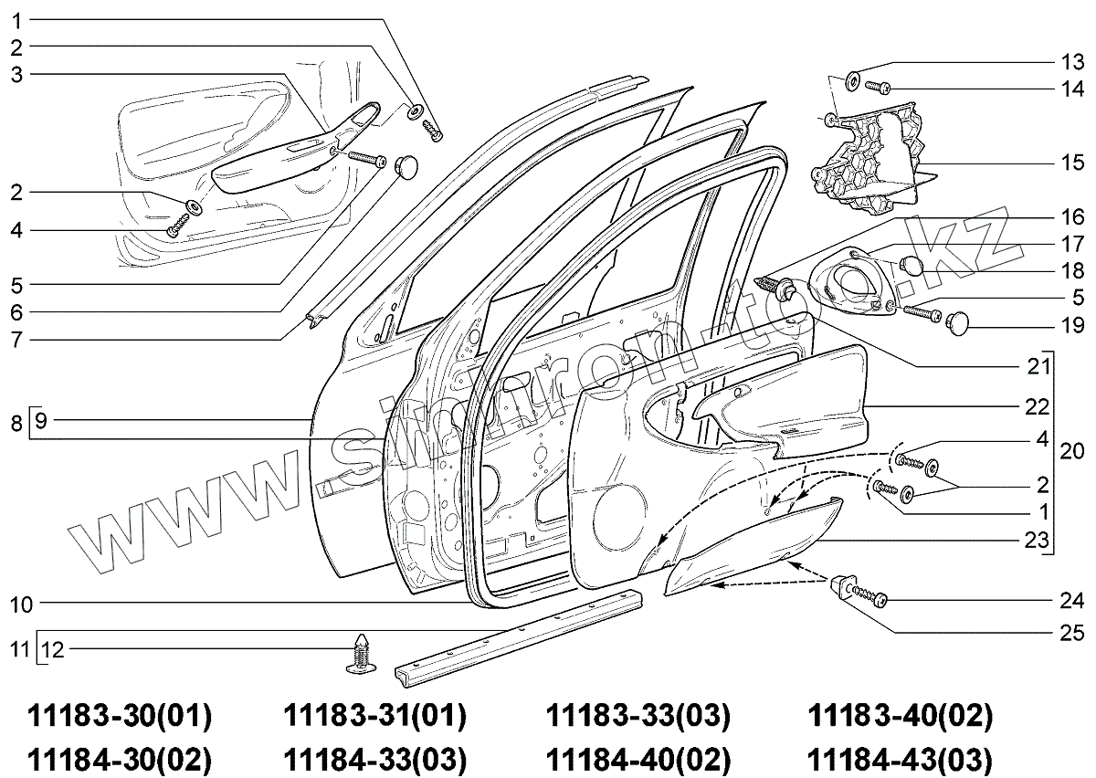 Каталог запасных частей к технике: ВАЗ LADA Kalina 1118. Двери передние