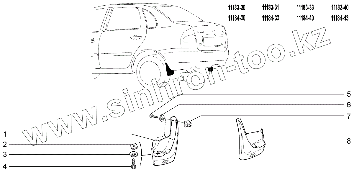 Каталог запасных частей к технике: ВАЗ LADA Kalina 1118. Фартуки