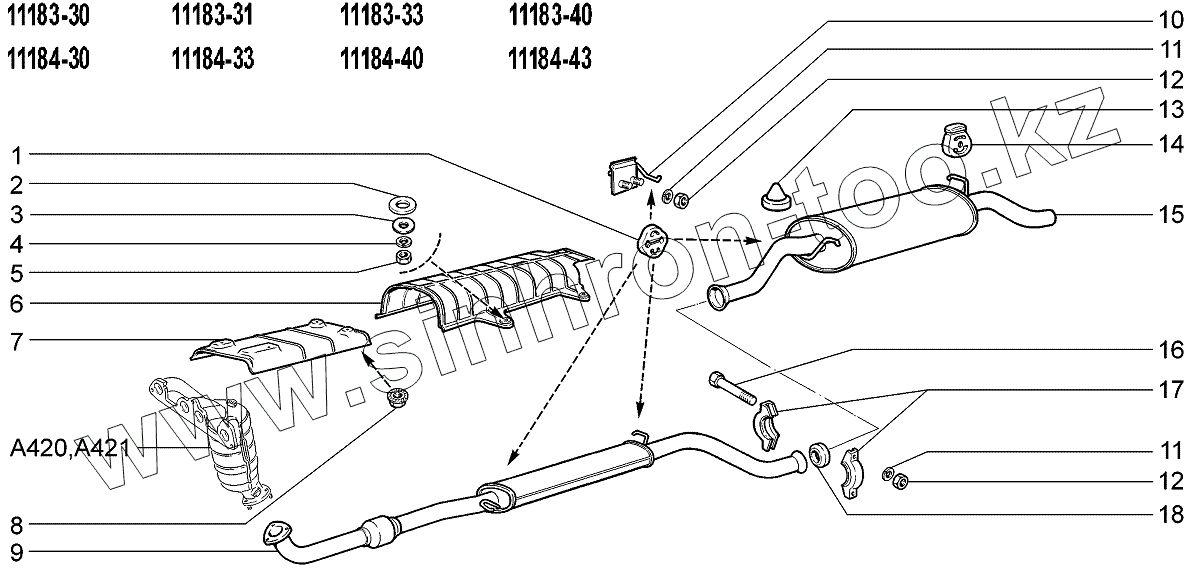 Каталог запасных частей к технике: ВАЗ LADA Kalina 1118. Глушители