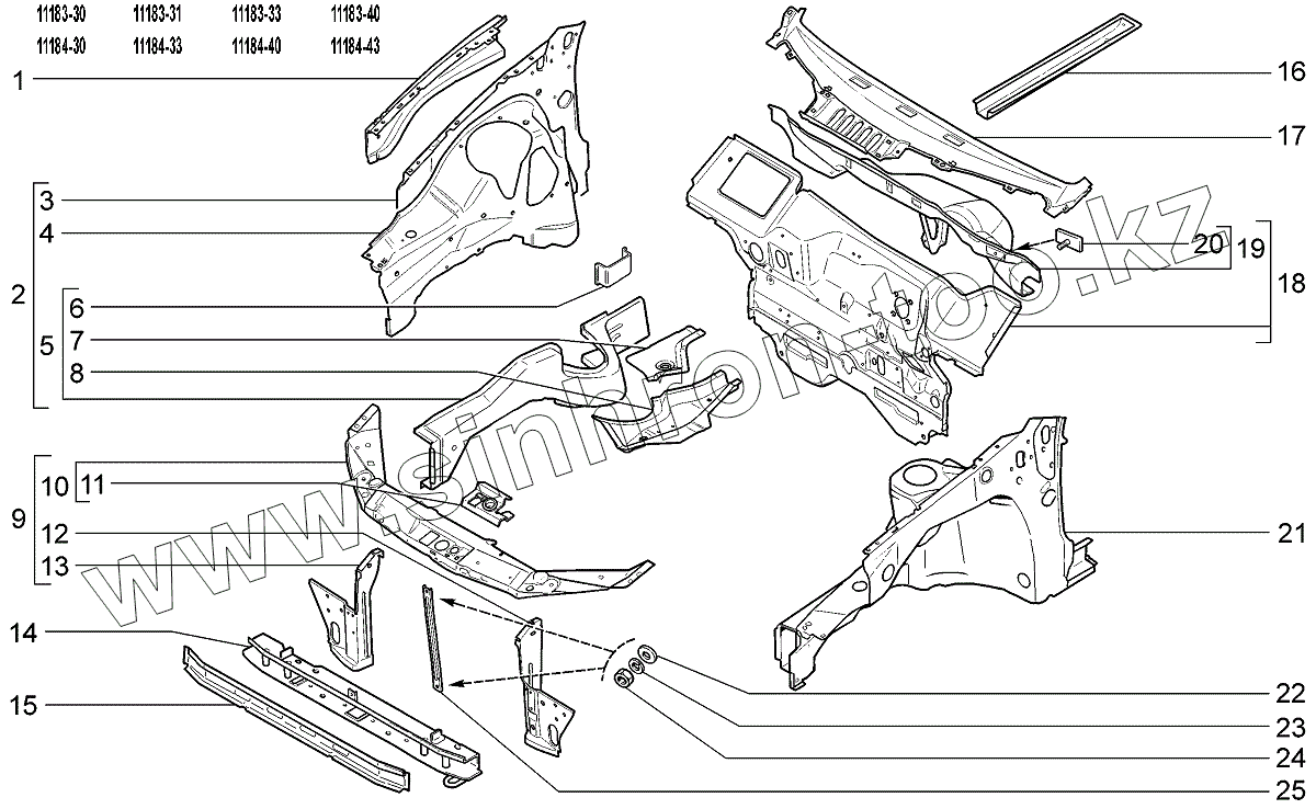 Каталог запасных частей к технике: ВАЗ LADA Kalina 1118. Каркас передка