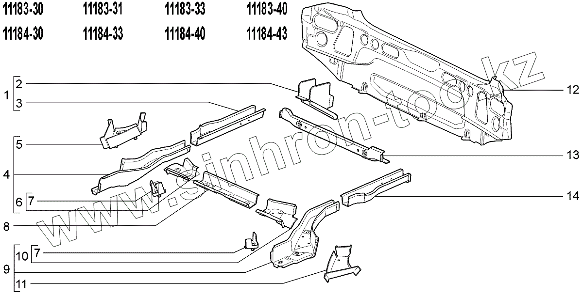 Каталог запасных частей к технике: ВАЗ LADA Kalina 1118. Каркас заднего пола