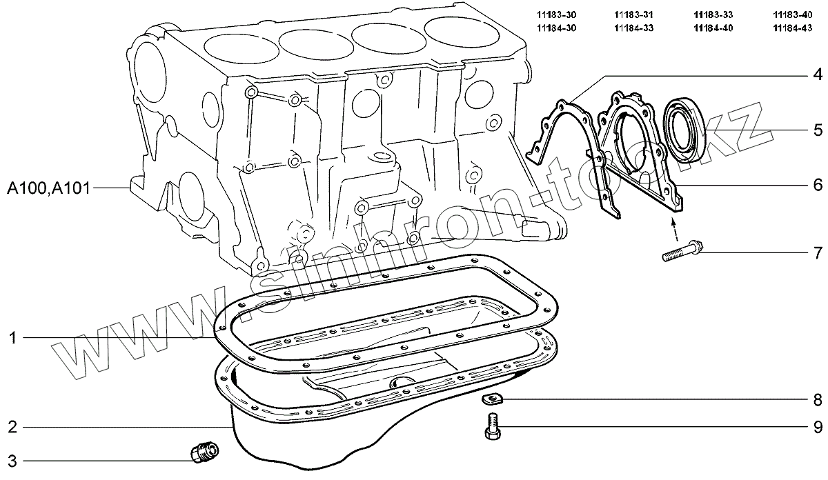Каталог запасных частей к технике: ВАЗ LADA Kalina 1118. Картер масляный и крышки блока