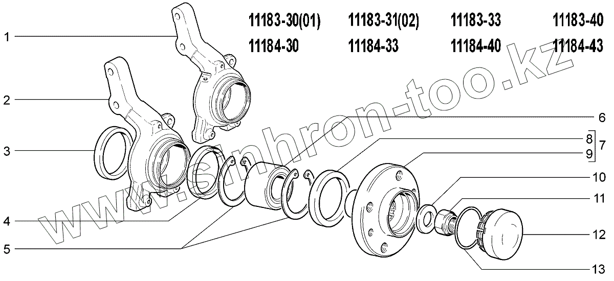 Каталог запасных частей к технике: ВАЗ LADA Kalina 1118. Кулаки поворотные и ступицы