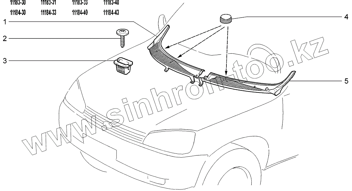 Каталог запасных частей к технике: ВАЗ LADA Kalina 1118. Накладки облицовочные ветрового окна