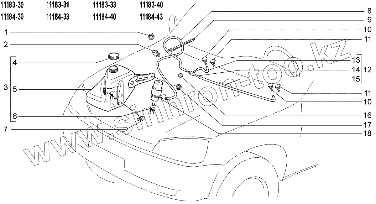 Каталог запасных частей к технике: ВАЗ LADA Kalina 1118. Омыватель ветрового стекла