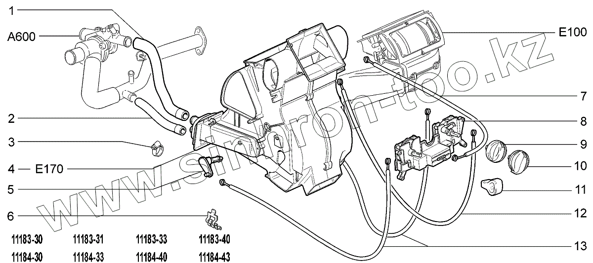 Каталог запасных частей к технике: ВАЗ LADA Kalina 1118. Отопитель с управлением и шлангами