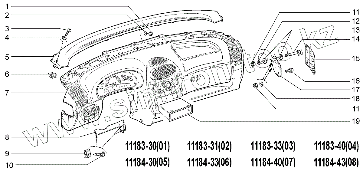 Каталог запасных частей к технике: ВАЗ LADA Kalina 1118. Панель приборов