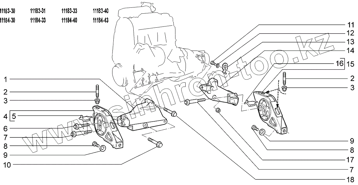 Каталог запасных частей к технике: ВАЗ LADA Kalina 1118. Подвеска двигателя
