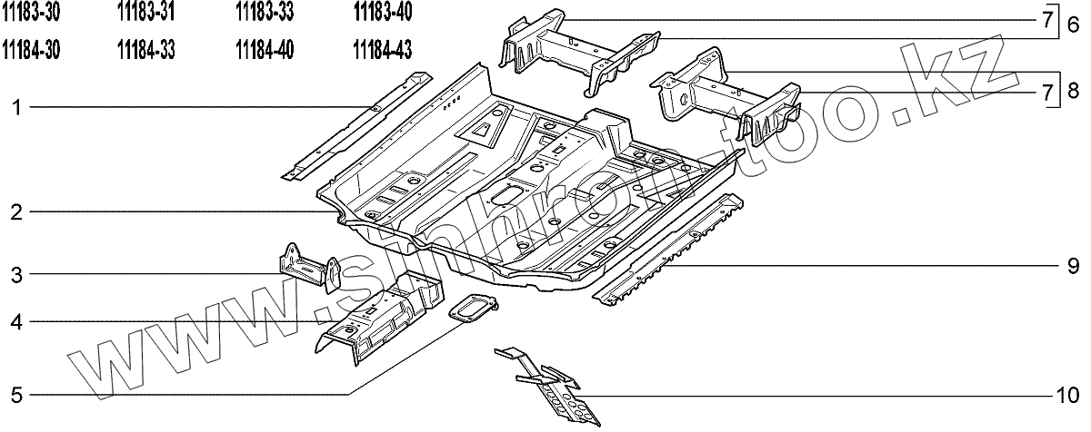Каталог запасных частей к технике: ВАЗ LADA Kalina 1118. Пол передний