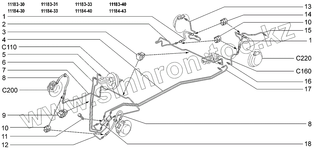 Каталог запасных частей к технике: ВАЗ LADA Kalina 1118. Привод гидротормозов