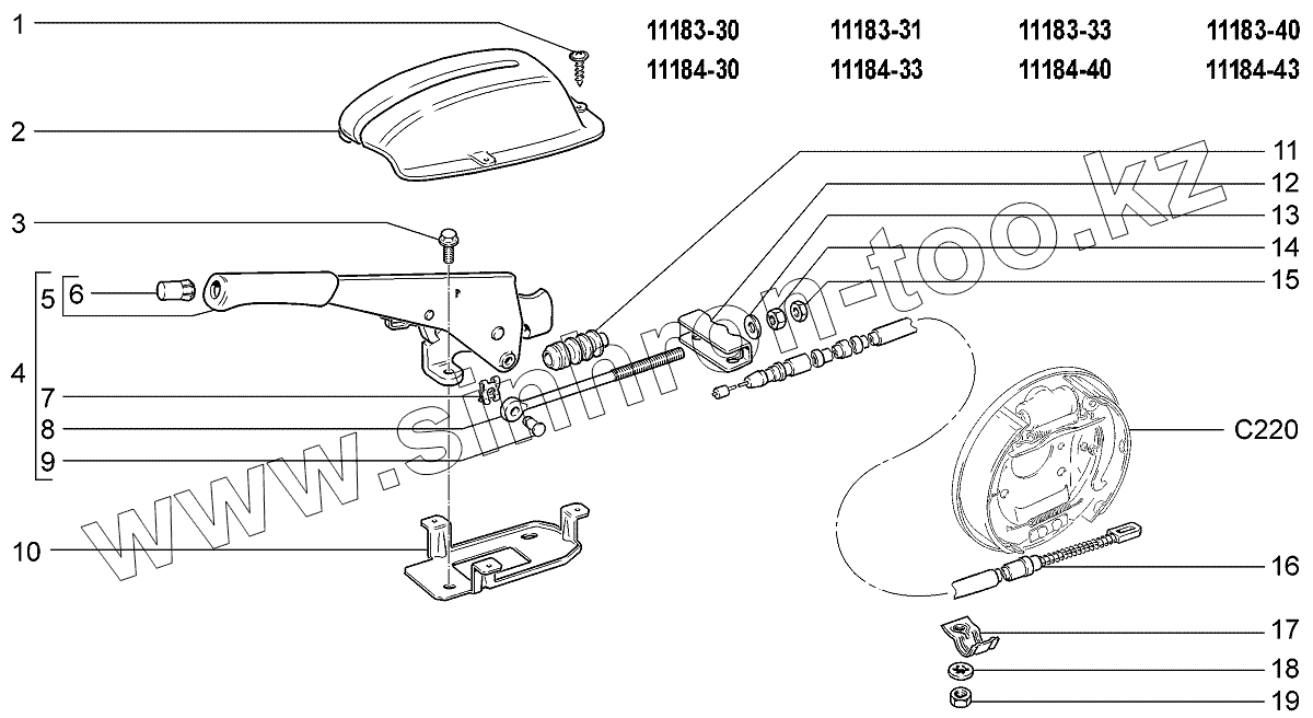 Каталог запасных частей к технике: ВАЗ LADA Kalina 1118. Привод стояночного тормоза
