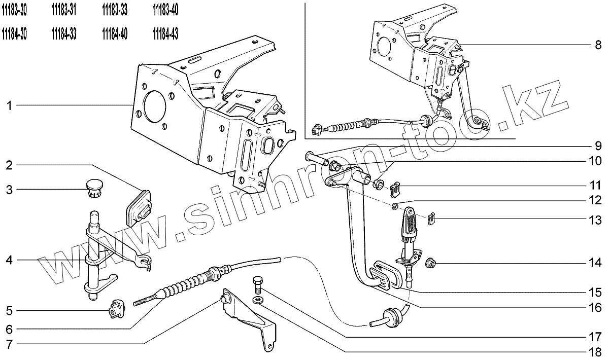 Каталог запасных частей к технике: ВАЗ LADA Kalina 1118. Привод сцепления