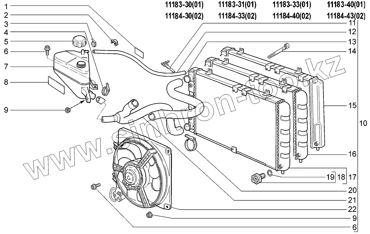 Каталог запасных частей к технике: ВАЗ LADA Kalina 1118. Радиатор и бачок расширительный