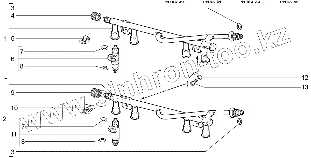 Каталог запасных частей к технике: ВАЗ LADA Kalina 1118. Рампа и форсунки