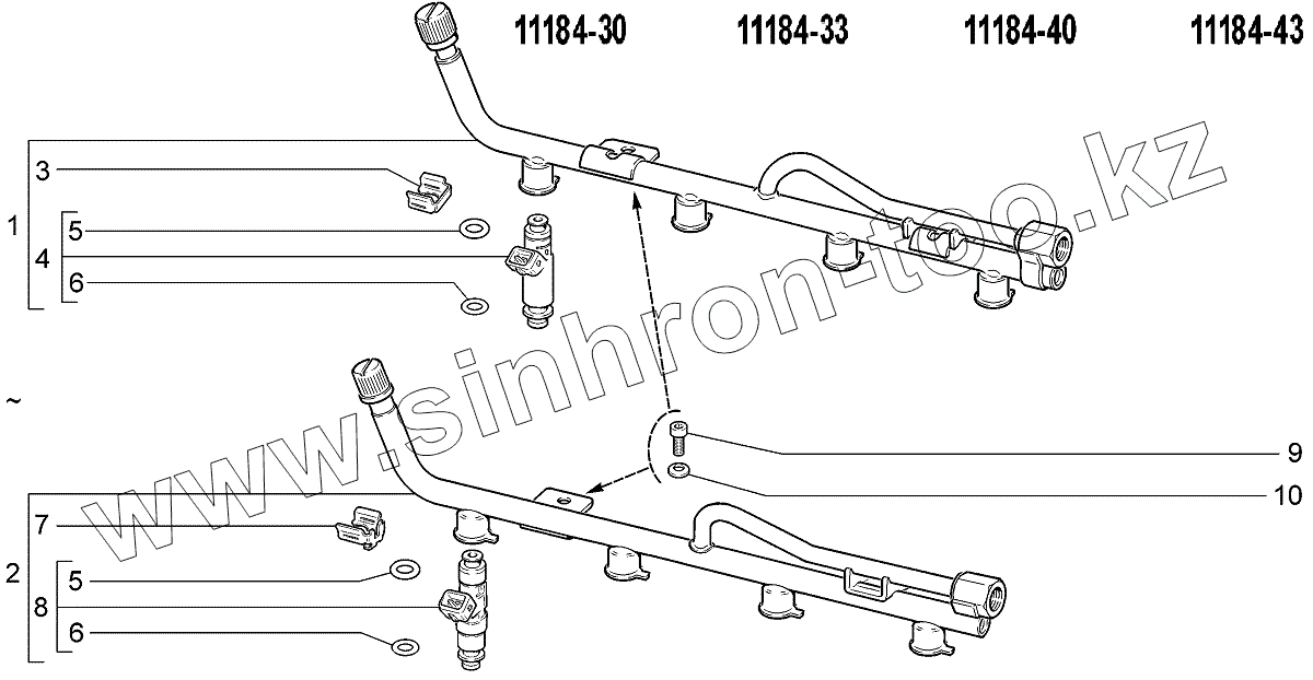 Каталог запасных частей к технике: ВАЗ LADA Kalina 1118. Рампа и форсунки