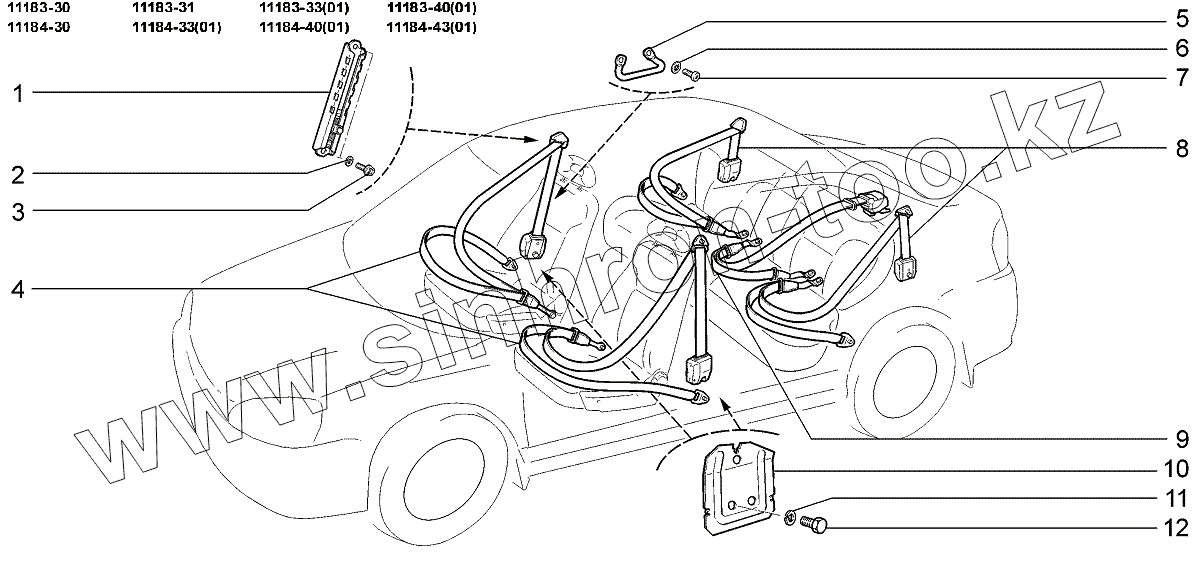Каталог запасных частей к технике: ВАЗ LADA Kalina 1118. Ремни безопасности